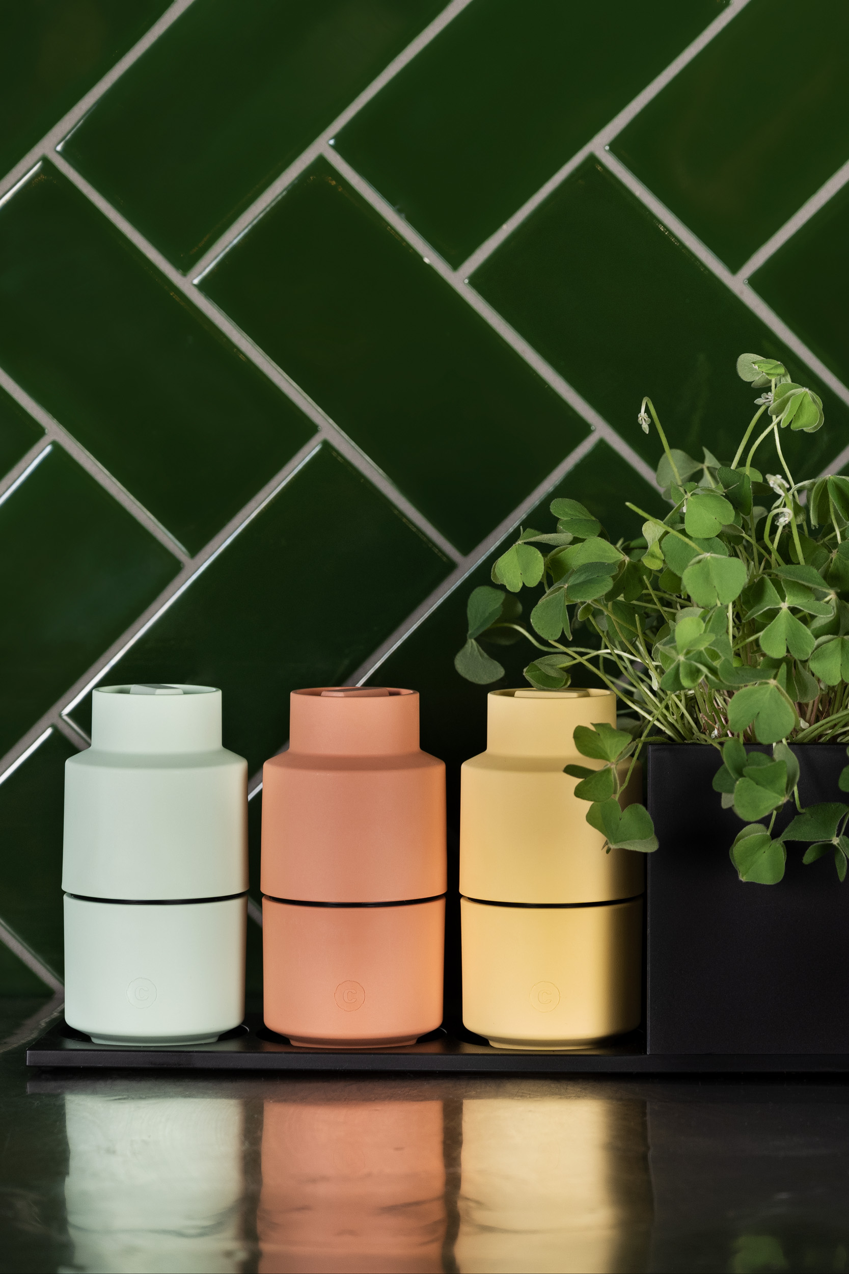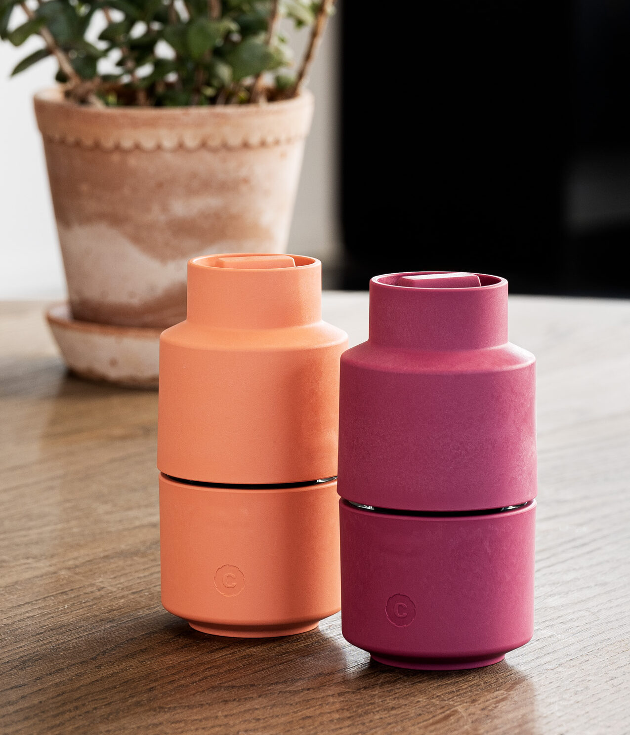 Gemaakt van een houtgebaseerd biocomposiet uit duurzaam beheerde bossen. Hierdoor heeft elke molen een unieke textuur.